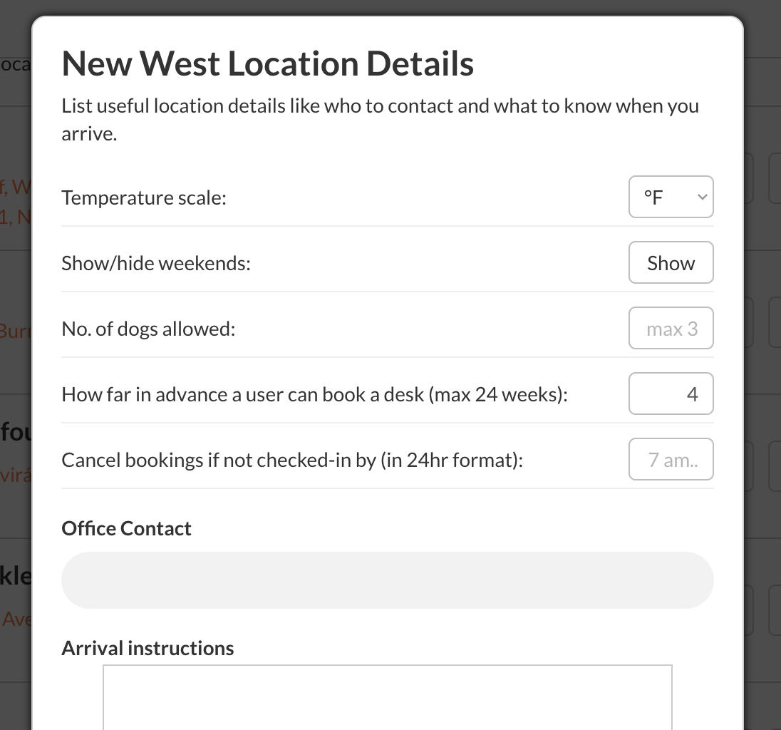 For example, you can set your location setting to be 7 (am in 24hr format), meaning all bookings not checked-in by 7am of the day of the booking will be automatically cancelled at 7am, thereby freeing up desks for others.