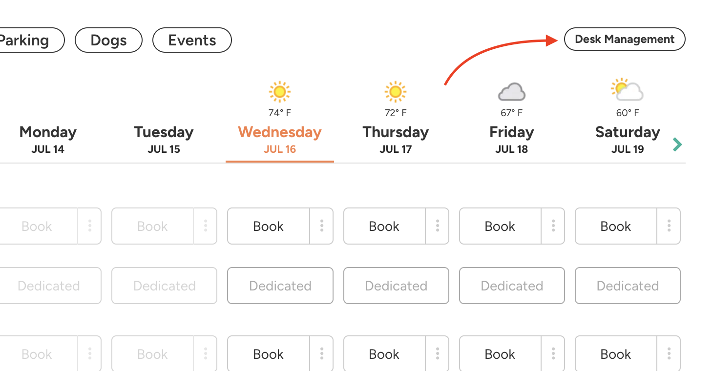 Method 1. Navigate to your Location's main page, then click on the Desk Management button: