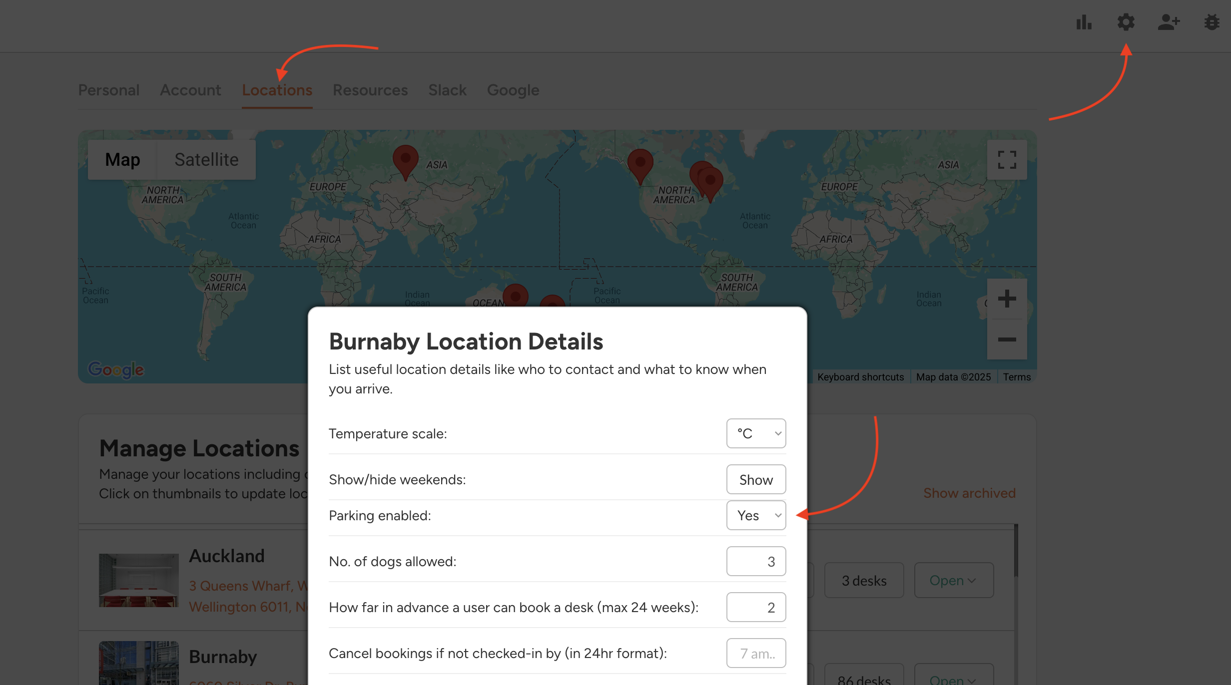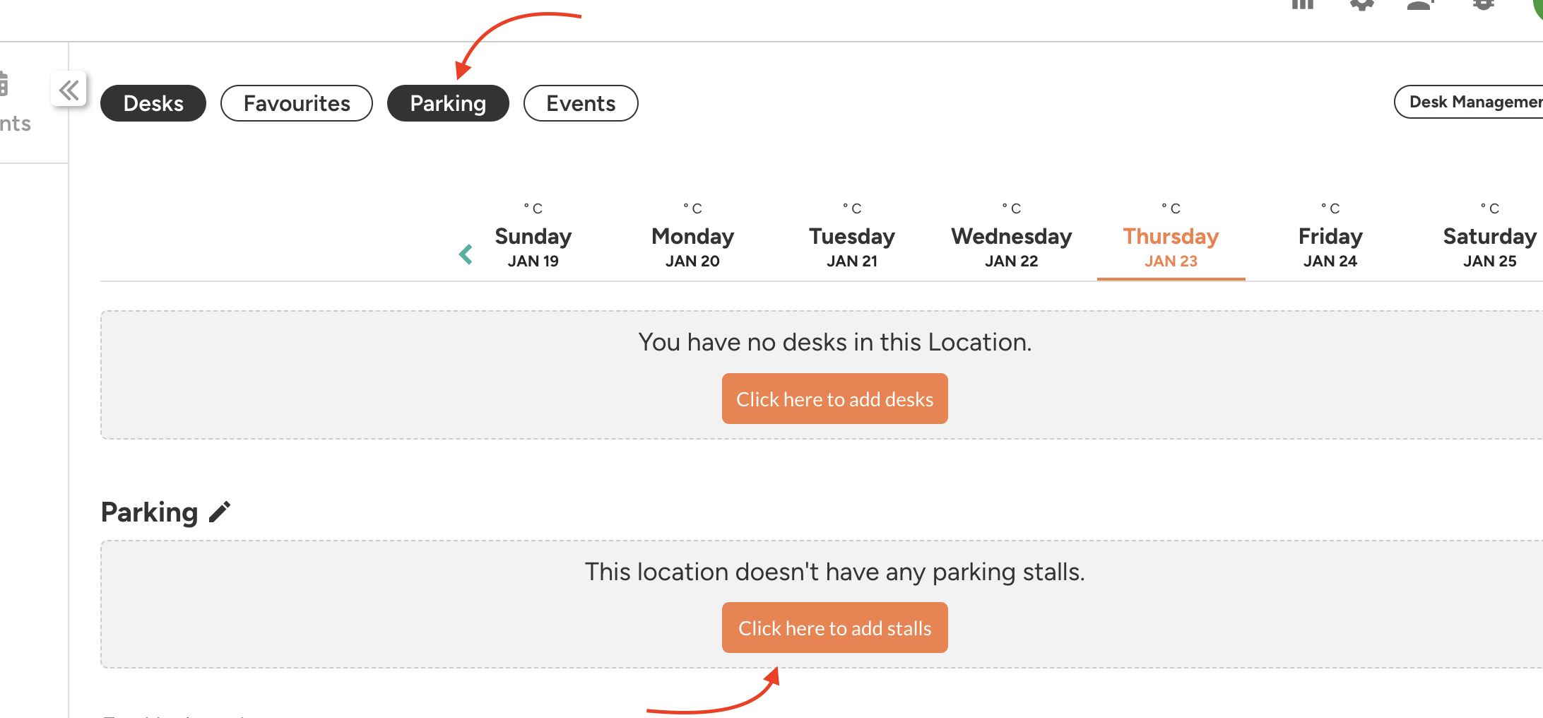 Updated over 10 months agoIn order to start reserving parking stalls, first make sure the parking option is enabled in Location settings. You can access this page by: