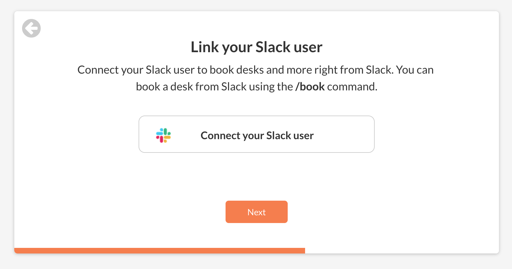Click on "Connect your Slack user" button and follow the prompts. Once completed, you will be redirected back to where you left off.