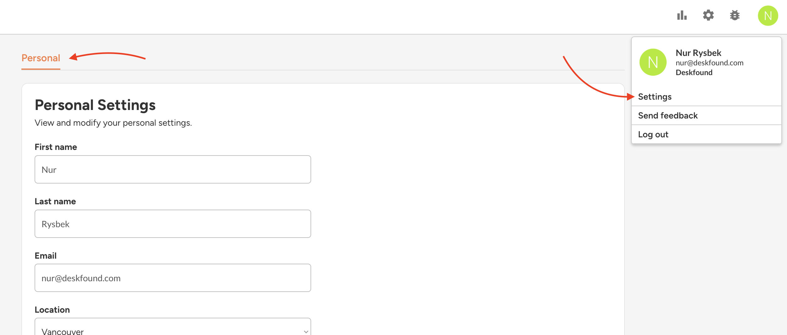 Once you land on the Dashboard, click on your Profile photo and then "Settings":